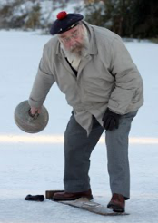 En y regardant de plus près et en étudiant quelque peu les recherches des historiens, on s'aperçoit qu'il s'agit à coup sûr de disques de bois et/ou de glaise gelée avec un manche " vertical " et non pas de pierres. On n'a d'ailleurs jamais retrouvé dans les étangs, lacs ou cours d'eau, des pierres avec des manches datant de cette époque. En fait il s'agit là très probablement du jeu que nous appelons aujourd'hui " Eisstock schiessen " toujours encore populaire dans les Alpes de la Suisse alémanique, allemande et autrichienne. Cela ne veut pas dire que cela est une preuve absolue puisque même au début du 20ème siècle (Canada) on jouait au curling avec des " pierres " en acier ou en bois lestés de ciment ! faute de matériel adéquat !